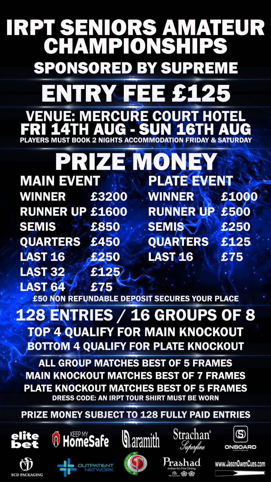 The IRPT Seniors Amateur Championship consists of one event per year.
