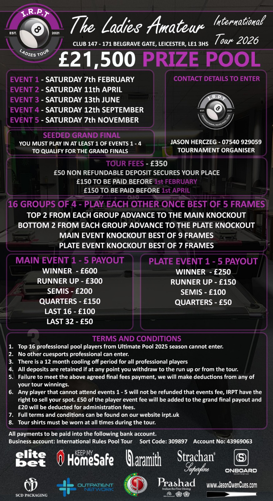 The IRPT Ladies Amateurs Tour consists of five events throughout the year.